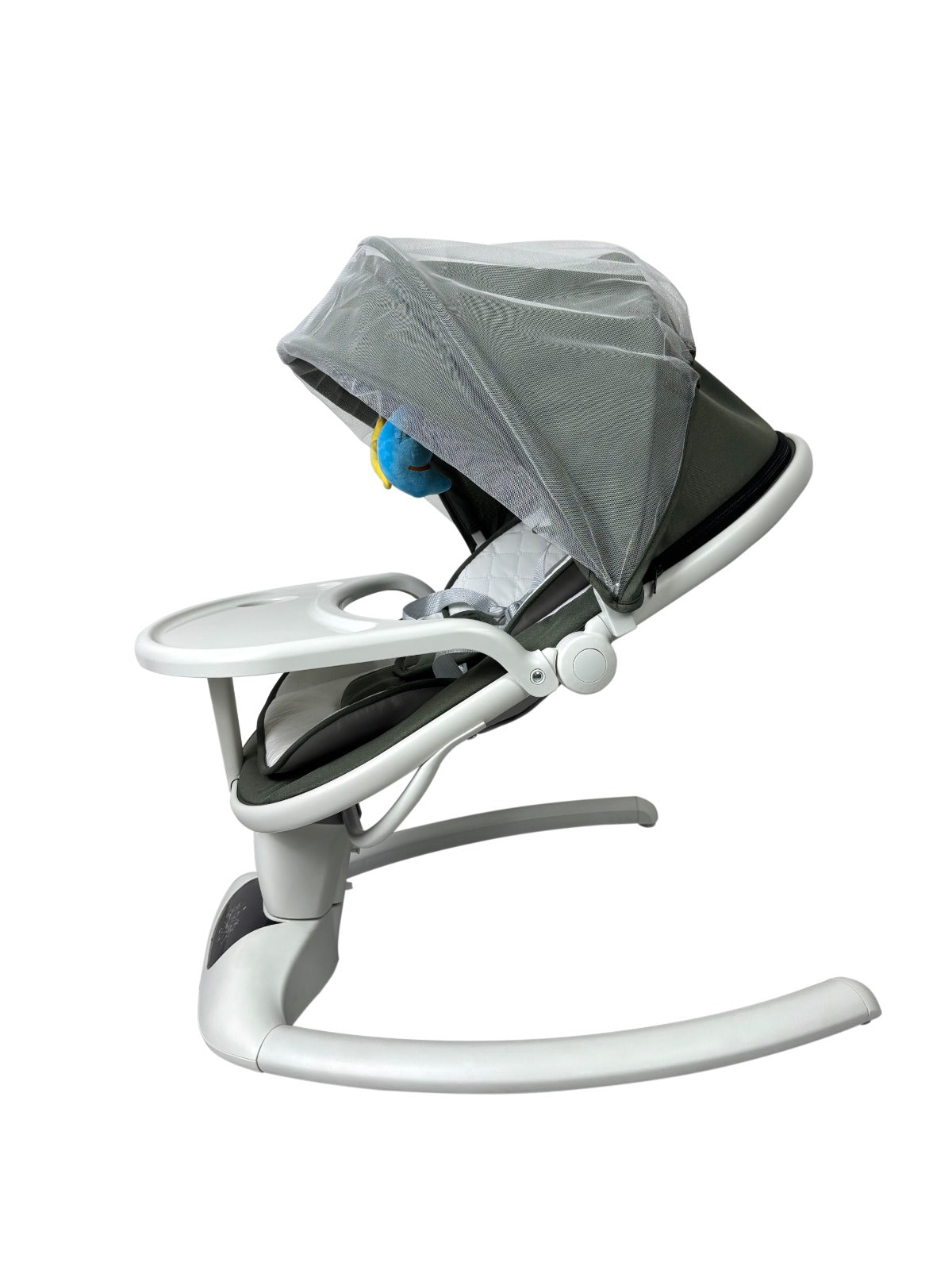 Crafted with comfort and safety in mind, it features soft padded seating, secure straps, whisper-quiet motor rocking, and a stable trolley design, making it ideal for nap time, feeding, and play. With adjustable speeds and optional soothing music (if applicable), this rocker becomes your perfect everyday parenting assistant.
