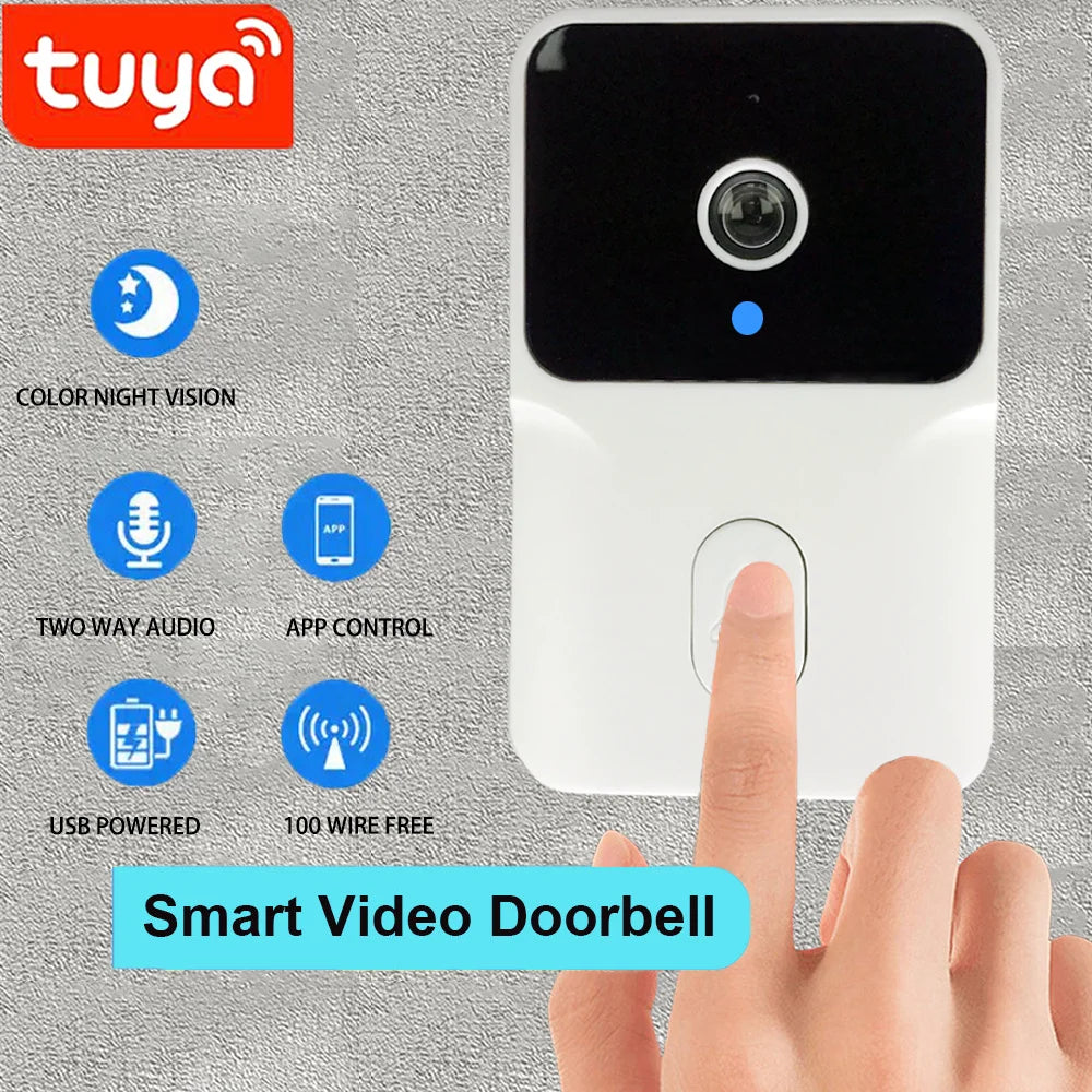 Tuya Video Doorbell Camera with WiFi – protect your home with this intelligent wireless video doorbell featuring IR night vision, motion detection alerts, and two-way audio communication for complete security and convenience.