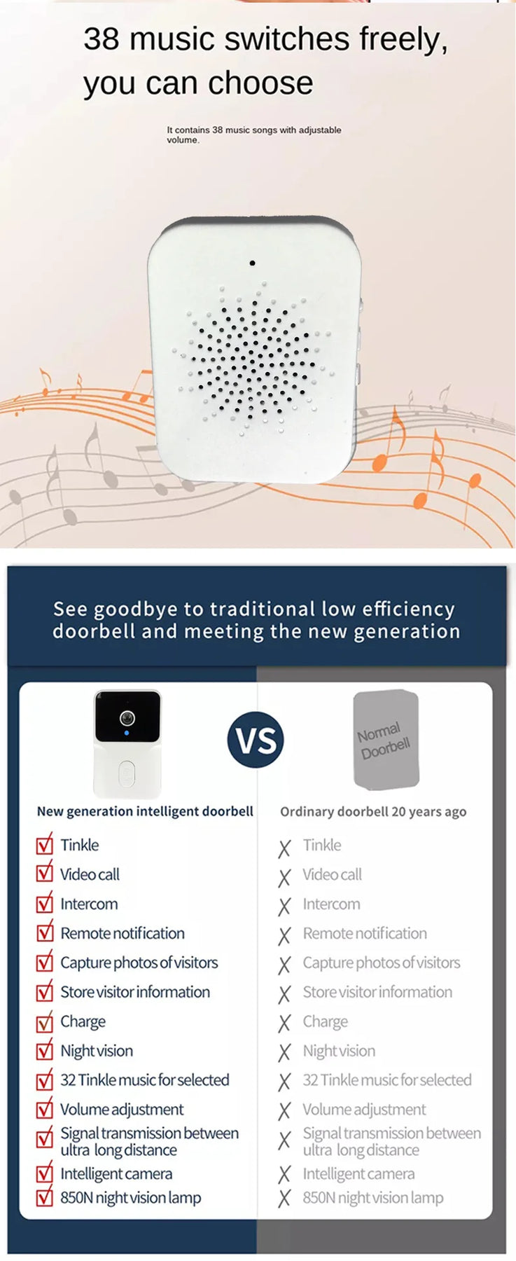This smart WiFi doorbell camera provides 24/7 home security monitoring with crystal-clear video and instant motion detection alerts sent directly to your smartphone. The built-in IR night vision ensures clear visibility even in complete darkness, while the two-way intercom allows you to see and speak with visitors from anywhere. Compatible with Tuya smart home ecosystem, this wireless doorbell is perfect for apartments, villas, and homes, offering easy installation without complex wiring.