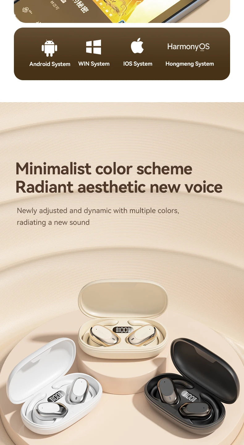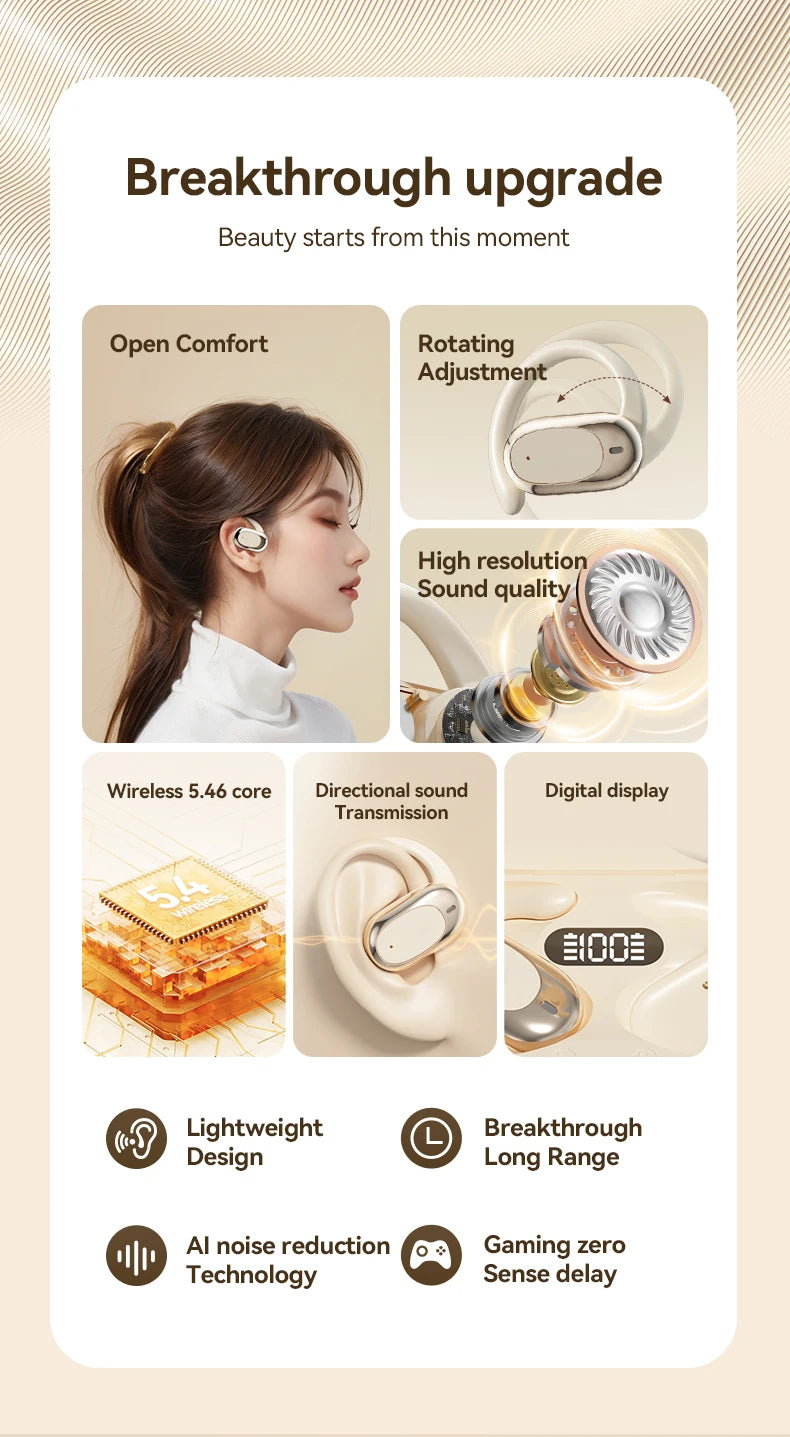 Experience innovative open-ear audio with these Wireless Earbuds designed for gaming and sports. Featuring Bluetooth 5.4 technology, low latency for gaming, and high-fidelity stereo sound with noise cancellation - perfect for active lifestyles while staying aware of your surroundings.