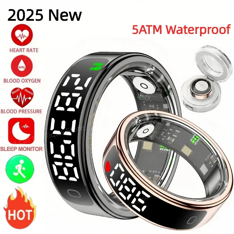 Smart Ring - LED Display Heart Rate Blood Oxygen Monitor Waterproof